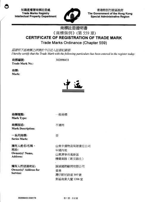 香港是亚洲的国际大都市的金融、贸易、航运中心,在贸易及物流运输中发挥着不容忽视的重要作用。此次中运商标在香港的成功注册,不仅有利于中运物流在海外的商标保护,维护集团的知识产权权益,更提高了品牌市场知名度,为中运物流进军市场提供了重要的基础,是实现中运物流发展的又一次重大突破!